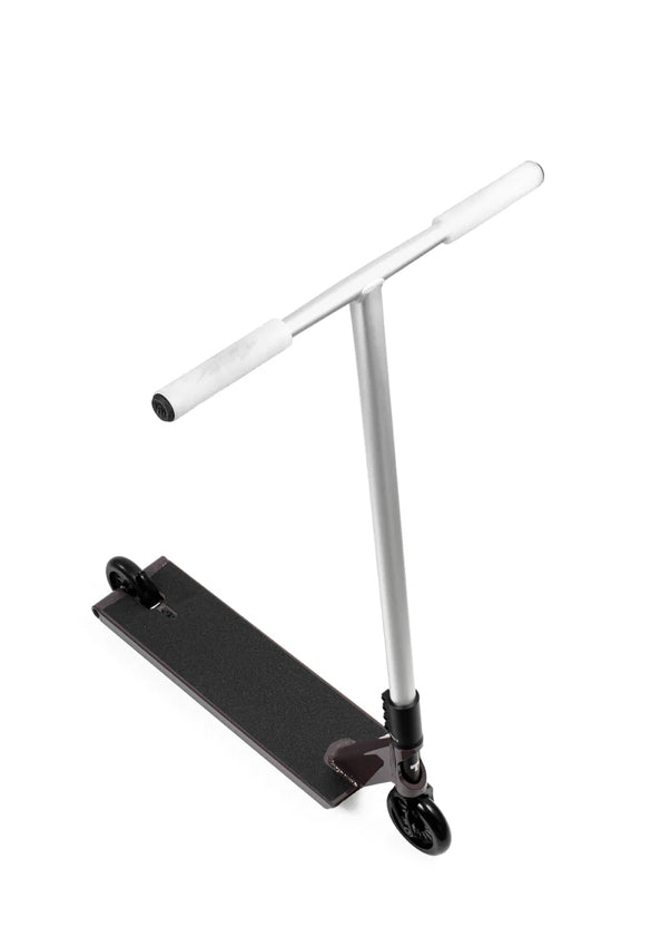 Tiene ruedas grandes de 30×120mm y una base ancha y larga de 6.2” x 22.5”, lo que da mejor estabilidad y control al hacer grinds, y el manubrio de aluminio oversized mantiene el scooter ligero resistente y equilibrado.